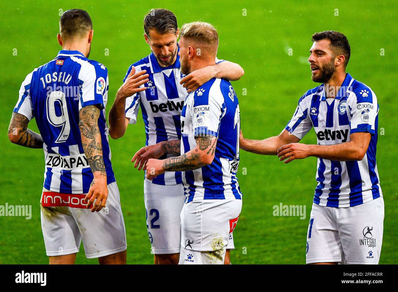 Valencia Spain April 24 0 1 Deportivo Alaves Goal By John Guidetti Of Deportivo Alaves During The La Liga Match Between Valencia Cf And Deportivo Stock Photo Alamy