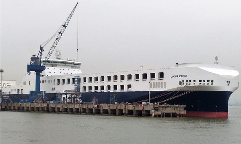 Ro-ro FLANDRIA SEAWAYS the fifth of DFDSs 6695-lanemetre ro-ro ships built by Jinlings Yizheng shipyard has arrived in Vlaardingen Rotterdam earlier today 29 September. 186 knots Main Engines. Das Schiff FLANDRIA SEAWAYS IMO.